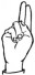 На ћирилици написано ДАВИД ЧИБУКОВАЦ састоји се из 14 слова [?]. Исписано ћириличном једноручном азбуком за глувонеме: